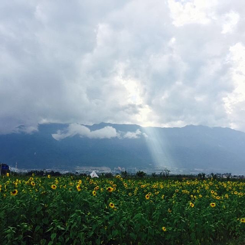 大理的天是阴晴不定的,变天就像孩子变脸一样的快,上午还是晴空,下午就下起了大雨,下了几个小时,雨停了,我更喜欢雨后的苍山,带一点雾气,有一点阳光,阳光从云层摄入向日葵,显得格外神秘,一天的行程就这么过去了~