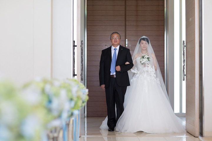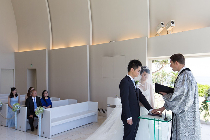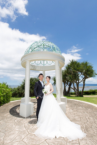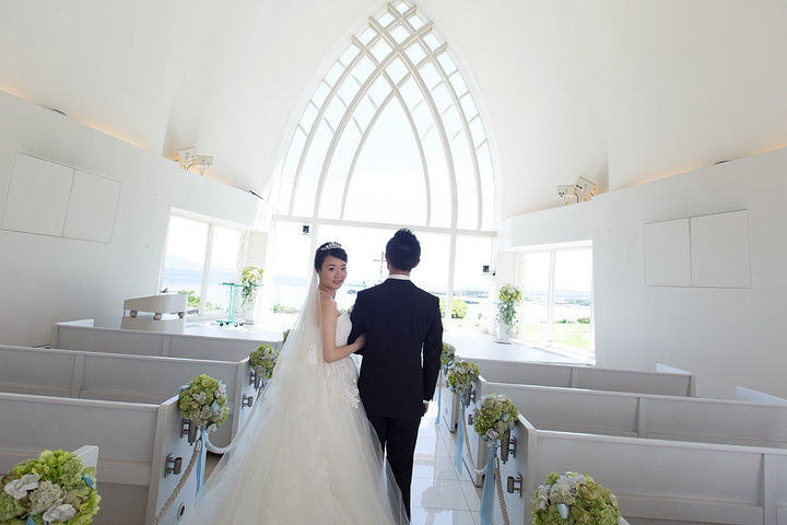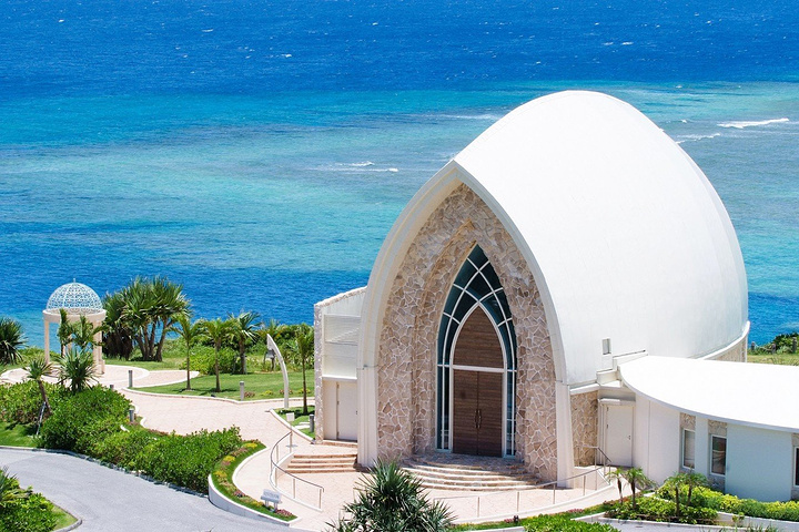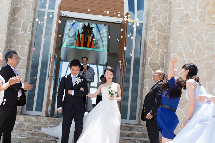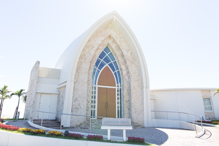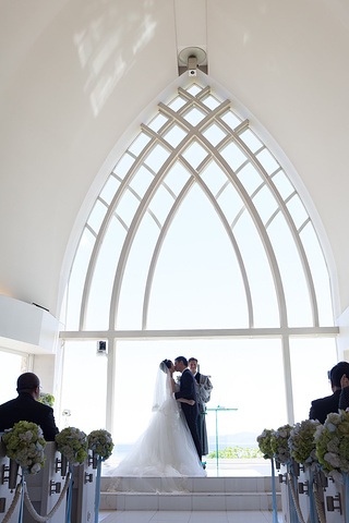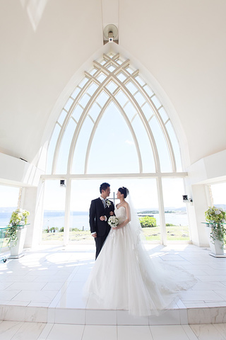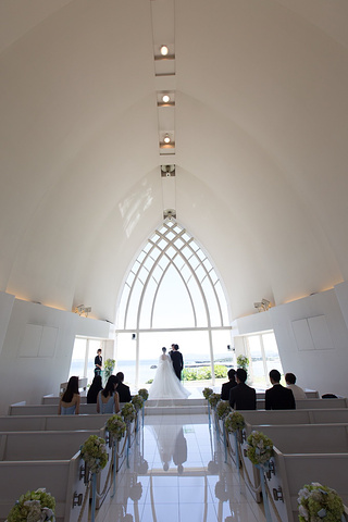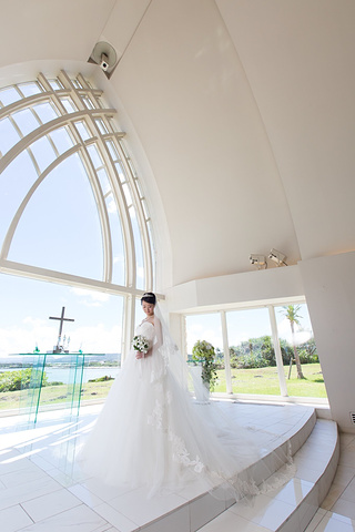 本次旅行的重头戏来啦~激动!激动!一开始收到这张图,是惊艳!以纯白色贝壳为理念设计而成的艾葵露雀教堂,静静伫立于冲绳西海岸闲静高地。 Aqualuce之名是由意大利文的"Aqua(水)"与"Luce(光)" 组合而成。和煦的阳光透过高达11米的巨大玻璃墙洒入教堂。伴随着管风琴的庄严音色,手挽手走在圣洁之路上,放眼望去是一片蔚蓝的天空。美的让人忘记了呼吸。在这样美丽的教堂与自己最心爱的人走向神圣的婚殿堂,接受身边最爱的人们的祝福,我可能也是有点词穷,是幸福吧~