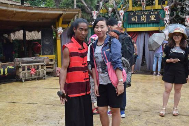 很爱跟佤族黑马王子合影,显白
