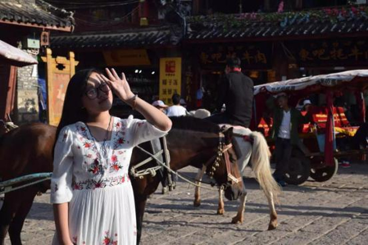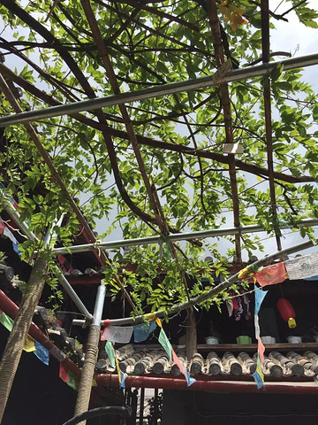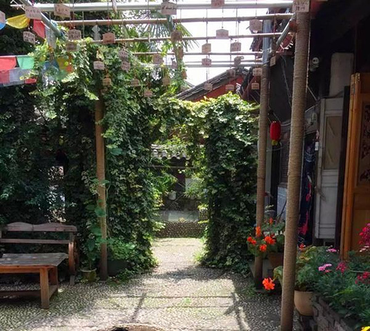 晚上十点多的火车,所以还有整整一天。决定走之前再好好体味一下束河,束河比大研小很多,巷子也简单很多,我们以四方街为中心,慢慢的走完每条街,小店、石桥、小溪、博物馆.......一样都没放过。 逛完古镇还剩大把的时间,我们选择全呆在客栈里了,“简单生活”——这个我们住了两晚的客栈是一家纳西族的老民居,院落里密密的滕蔓遮出了一片阴凉,坐在下面或看书或聊天或发呆,都那么合适。院子里有一处小客厅,客栈的美女总会在这里邀大家一起喝茶聊天,客栈小哥也总会抱着吉它轻轻的哼唱。 而我最喜欢的地儿是沿木梯上到二楼,坐在古朴的长木椅上随意翻动着桌上的书,摆弄着种在各种小盆里的多肉,透过百合的香气,越过院子上的滕蔓,看向被四方院屋顶裁剪后整齐的尉蓝天空,几朵白云就在这片小小天空里蔓延流动。整整一下午就这么呆着,游客的暄闹被这座古朴的院落挡在了世界的角落,只会偶尔被客栈那只有着接地气名字的小猫“翠花儿”和一只洋气的小狗”sink”的嘻戏轻扰到。画面这么美,令人忘了生活的苟且,只剩下眼前的诗和远方。
