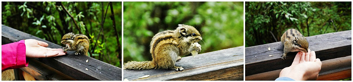 期间只有遇到喂食不怕人的小松鼠觉得有意思,其他时间,大雾弥漫,忽而下雨,雪山基本没啥露出来的。一路上没啥好看也没啥好拍的,就是足够原生态外加空气不错。
