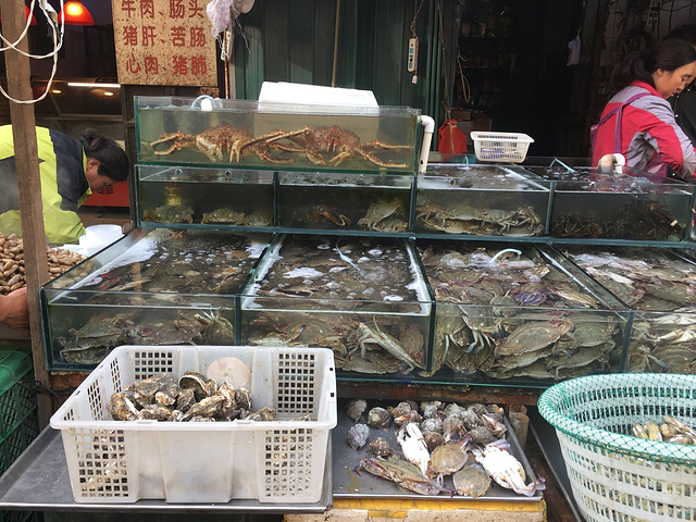 都说了我们是吃货,吃饭怎么能不选择海鲜市场啊,不过跟后来我们去的团岛海鲜有点偏贵,加工费也不是很便宜,但是团岛比较远而且要早上去才好。营口会有加工的拉客,一路跟随根本赶不走,挺烦人的呢~给大家粗略报价一下,雪蟹150/斤1只大概600 700元,大龙虾100/斤我们买了一只148元加工费2吃80元,蛤蜊5/斤,生蚝5/斤,螃蟹35 45 55的按大小算,如果辣炒推荐35/斤,加工费辣炒35元,生蚝8/斤蒸10元不管几斤如果放蒜就要2元1个,蛏子,海螺8/斤,八爪35/斤加工爆炒8元,海螺小的8/斤。我们买了不少加上加工费一共640到700左右~