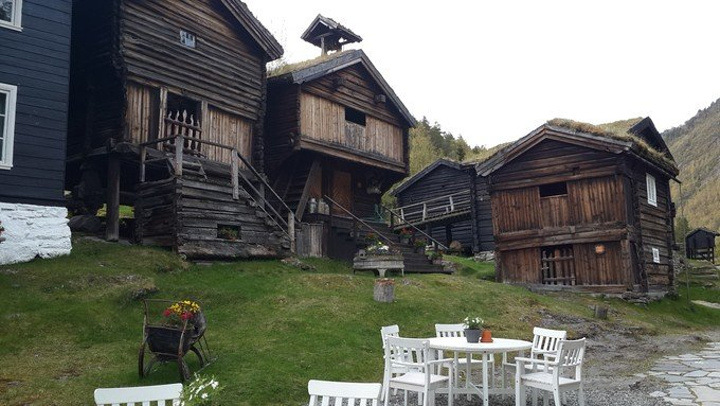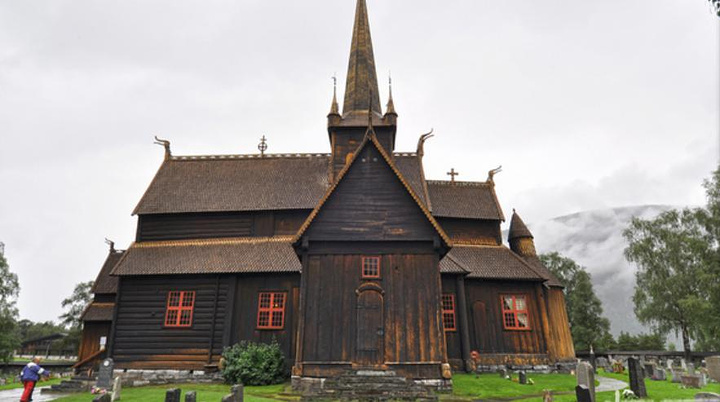 Mike尽职的继续介绍:小镇洛姆(Lom)的洛姆在挪威语中是“草地”的意思。这个小镇历史悠久,除了瑰丽的山区风景以外还能看到古老的木教堂(Stave Church)就是这座木教堂。不许笑大叔接话:“教堂建于12世纪,是一座三层的木质教堂,造型独特,具有北欧维京风格的痕迹。”我:“呃~”只能能点点头,对这些一窍不通的女纸伤不起啊。