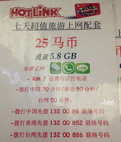 在亚庇机场就能看见他们各自的柜台,digi的柜台在最里面,我们是想买Celcom的卡,结果接机的人直接就带我们去的Hotlink的柜台,说这边是中文服务,我们也不想耽搁别人太久时间,就买的7天的Hotlink卡。果然在岛上没有信号
