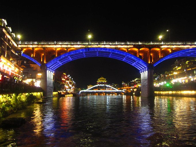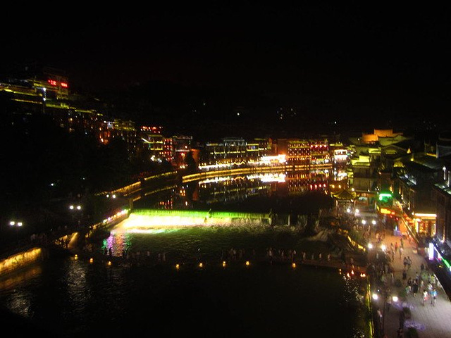 从篝火晚会回到大桥上,我们继续夜逛凤凰,夜晚的凤凰,比白天显得更为喧嚣,大桥下的酒吧,里面灯光摇摆不定,播放着劲歌热曲,外面一堆人在拉客进去“放松”。