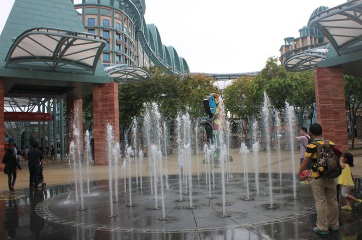 好多小孩在玩水,我也想去玩hallo~这种免费的巴士,要在地下负一楼坐车,记得上岛拿个地图,很清晰,巴士都是免费的,我们要去亚洲极点的沙滩,看好地图,都可以到路过地标极速前进~来自游记花园城市新加坡,我来了