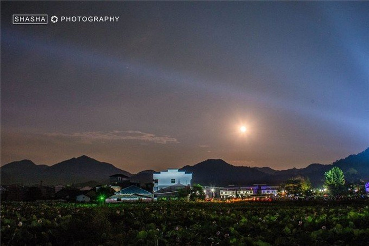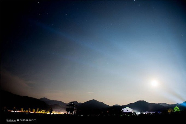 在这么强的灯光和月色下,依然可以看到满天的繁星。可见天空之透彻,空气之清爽。