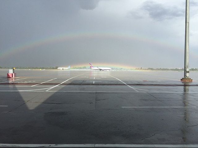 下午16点30的飞机,延误了3个半小时,不过看到了双彩虹