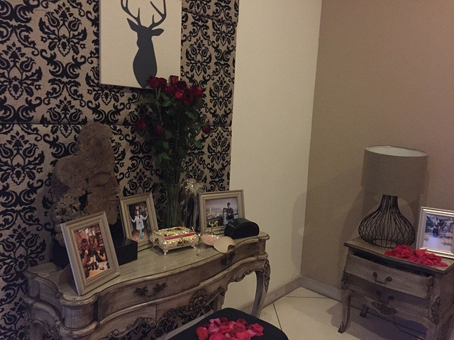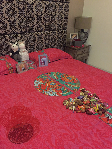 一大早就起床布置婚房,为了这一天,我们准备了很多,带了一些对于我们来说非常有纪念意义的东西,便于拍摄,例如刘先生送我的生日礼物roseonly(一个身份证一辈子只能送一次),登记纪念照,各地旅游的照片,妈妈给我准备的首饰盒等等。令我惊喜的是别墅的管家还给我们放了玫瑰花。