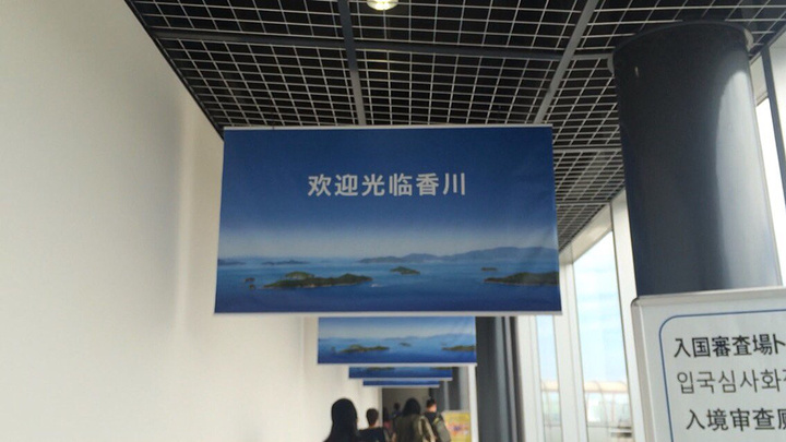 高松机场不大,离上海一个半小时的飞行时间,时差比上海快1小时。落地时中午12点了。