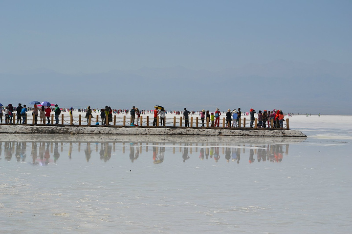 上午9点多我们来到了有天空之境美称的查卡盐湖。排队买票的人好多呀,排了40多分钟,进入景区,遍地的盐,白白的,最奢侈的是连雕塑都是盐做成的很特别。由于我们的衣服不是很鲜艳,天空也不是太蓝,照片效果不是太好。景区内的小盐雕还是很可爱的。