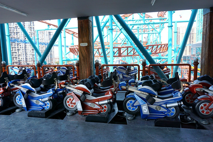 游乐设施好多,大人小朋友的项目都不少:冒险王碰碰车、能源转杯、八爪风暴、鲨乌海盗船、达佛斯狂呼、魔法森林、侏罗纪4D影院、飞越海峡,冒险奇兵,疯狂海螺、超级秋千、旋转木马、群龙乱舞、时光穿梭机、小龙过山车、超级跳跳星、魔镜迷宫、恶灵阵地、摩托过山车、高空缆车、云霄飞伞