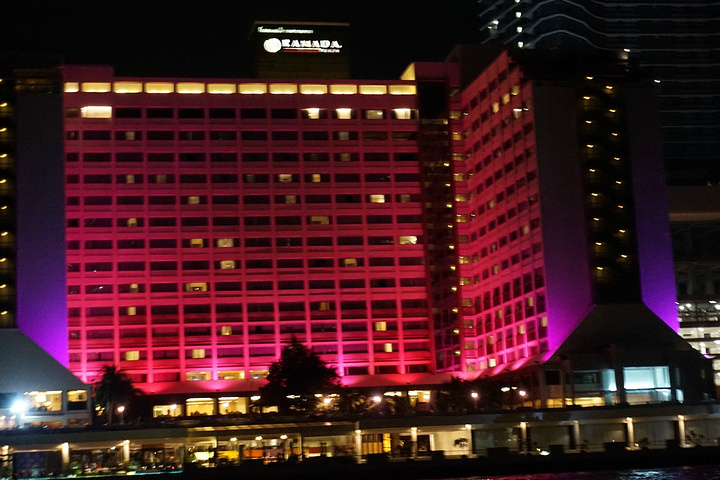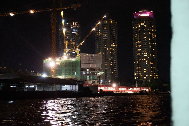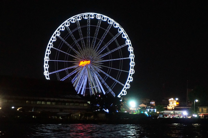 乘坐天铁我们来到了河畔夜市,乘坐免费的船可以直接到达哟,顺便可以看看河边两岸景色,真是划算,免费游船的时间从下午四点半到晚上十一点半。这边有一个人妖秀场叫做克里索普人妖秀,不过我们到达的时间比较晚,而且这里的人妖秀比较贵,所以后来我们还是选择去到普吉再看了,这边的建筑主要偏欧式吧,比较复古,一大特色是那个摩天轮,好多情侣在摩天轮下合影,当然我们也有啦,哈哈,不然怎么叫做蜜月之旅嘛,来到异国嘛,放得还是会比较开的
