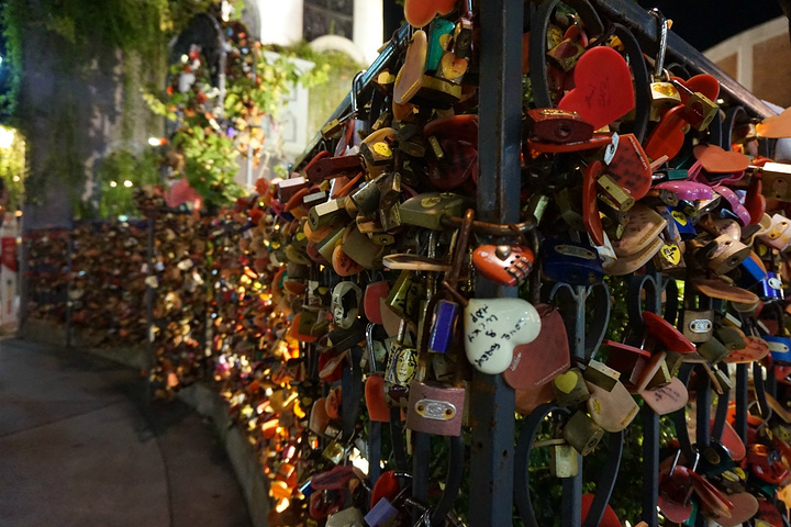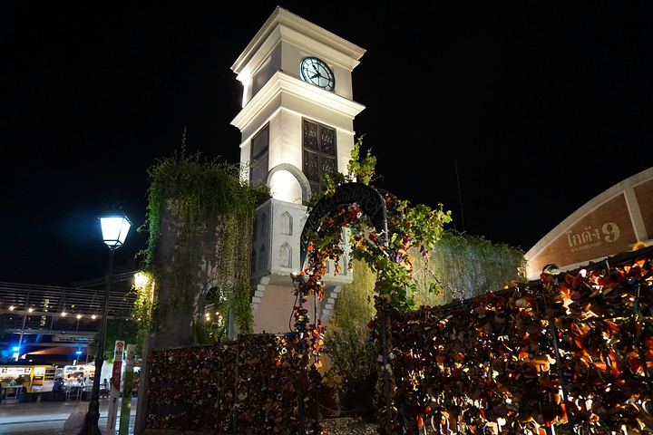 走到夜市场里面有个钟楼,旁边有人兜售爱情锁,写字后可以锁在栅栏上,有点韩风呢~~