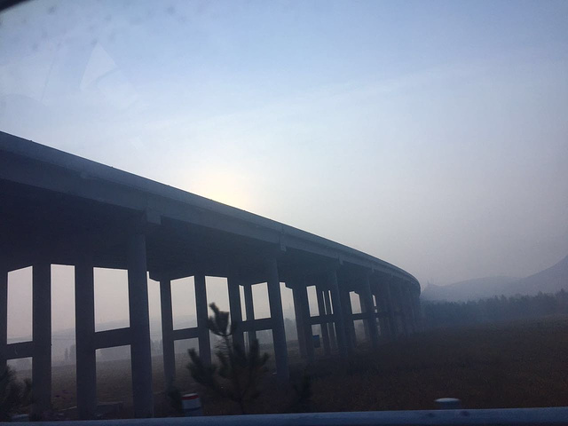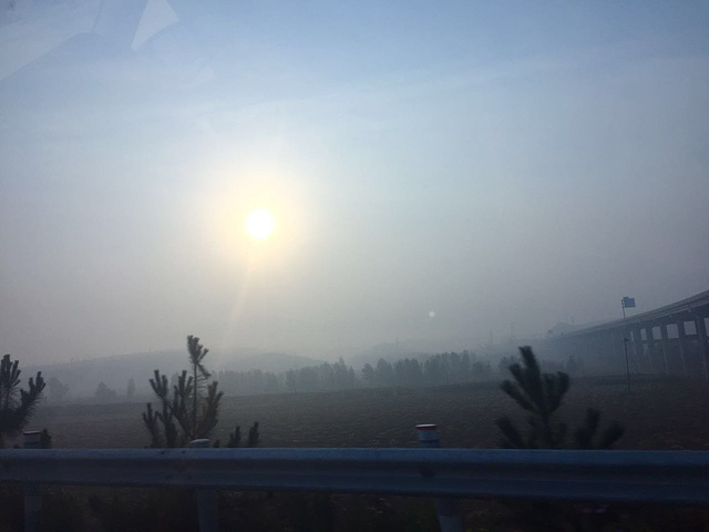 从天黑慢慢走向黎明,阳光在雾霾的遮挡下朦胧的出现了,景色在雾气的笼罩下有了仙境一样的感觉!越靠近的草原时候天也逐渐的晴朗起来,蓝天白云也逐渐浮现出来,心情也开始阳光起来!