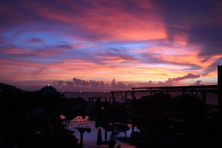 晚上在台北的夜市逛完之后,住到了新北的海边,今晚酒店的景色简直了。下楼后正值日落,这张照片是原图……于是做了个决定,明天早晨5点起来看海上日出……
