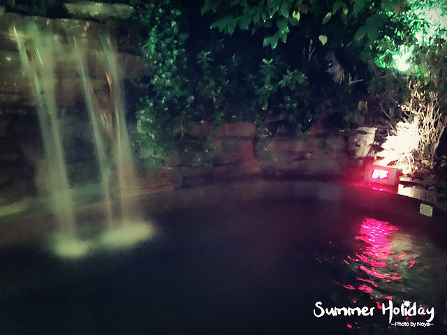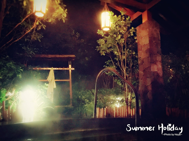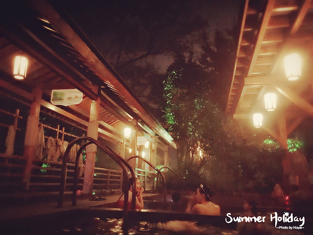入池,开始体验晚上泡温泉的感觉,最重要的是这个池只有我一个人在泡,并且有屋顶,简直完美