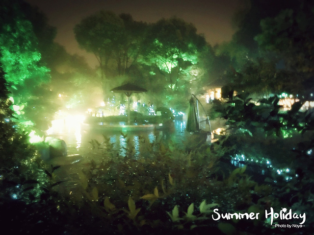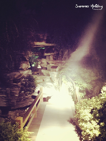 晚上的恐龙主题池很安静,因为这是整个园区温度最低的池子,晚上一般没人泡