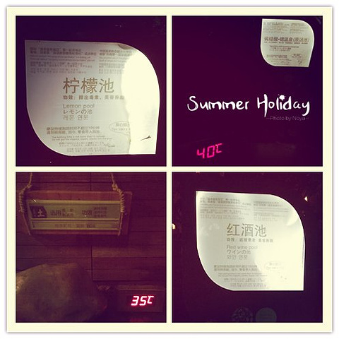 里面有好几种温泉池,柠檬池,薄荷池,红酒池,原汤池,五行池,动感池,亲亲鱼池等等,不同时候去开放的池子不同~