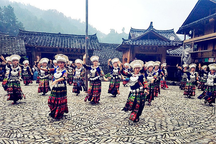 她们身穿绣衣条裙,头戴银角冠跳起舞来