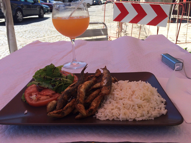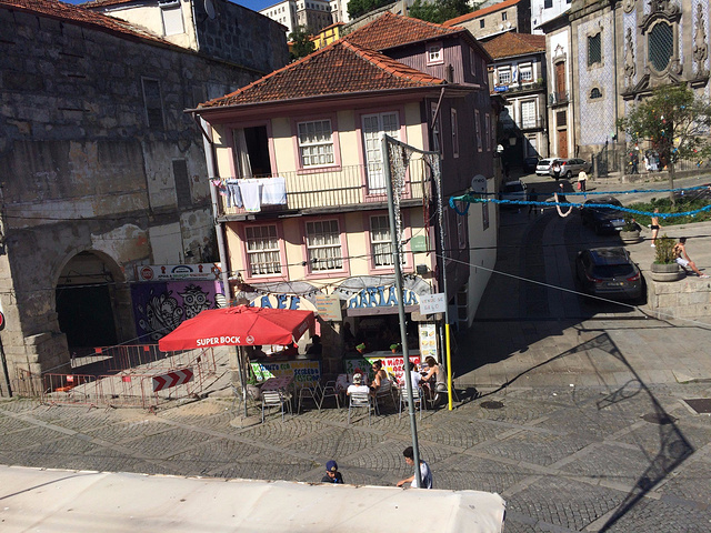 找了家看上去非常地道的手写菜单的小破餐馆吃饭,服务员是小黑哥,为啥在葡萄牙的小黑哥都让我觉得那么和蔼可亲呢,沙丁鱼,不想吃的但是太晚了木有别的菜了,本来想吃波尔图内脏炖肉的,说不是每天都做的,说如果我要吃老板第二天可以帮我做,但是那个沙丁鱼味道虽然不错但是吃的我这辈子再不想吃了,打个隔出来还是满满的沙丁鱼味道。。。那个米饭也太生硬了,算了算了,还是不要预定了吃饭的时候欧洲杯又开打了,葡萄牙人是真心爱看足球的,男女老少搬个小板凳在那边津津有味的看,氛围不错