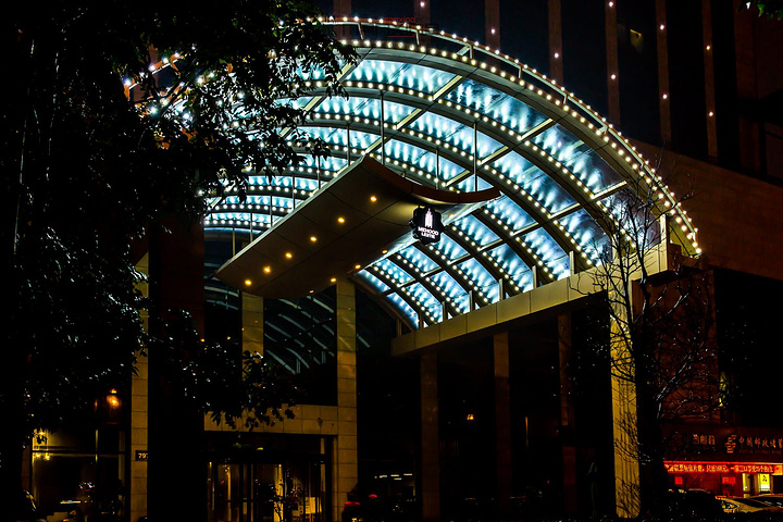 到达酒店后,外面的雨还是时停时下,夜景也就这一晚上,作为一名职业摄影师这又算得了什么?打起伞带着相机冲进雨里,拍摄下酒店的夜景外观!~