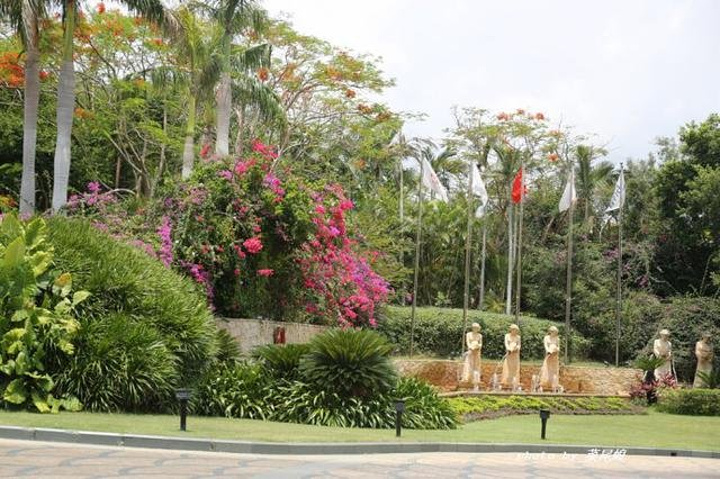 五月的三亚花开遍地,惊艳的凤凰花,开在门口的三角梅,路边的紫薇花很明媚,不同颜色的鸡蛋花灿烂着枝头,园林小路上的莲雾果熟了,旁边的黄皮还泛着绿色,西餐厅边上的铁西瓜结着硕大的果,很像柚子,发财树的果我第一次见,听说会发财。满园的花香。