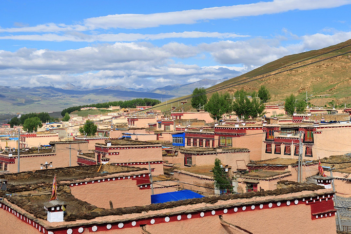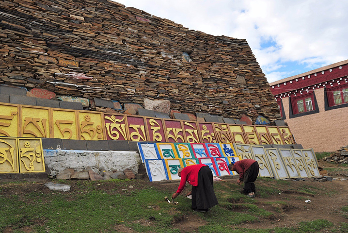 早饭后,到达理塘的喇嘛寺长青春科尔寺。寺庙前面有很多藏民在转白塔。