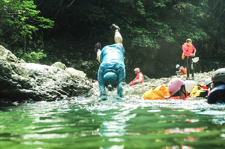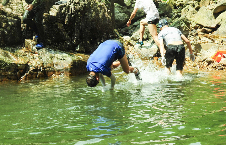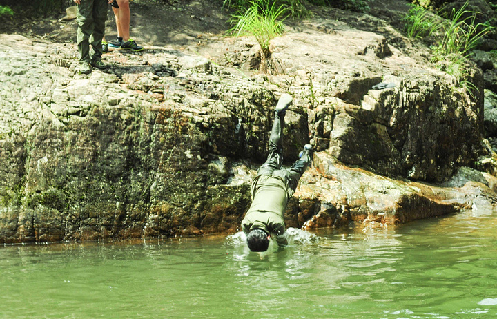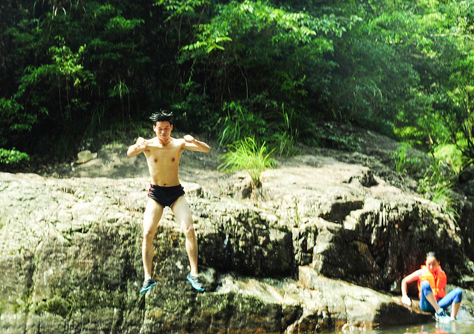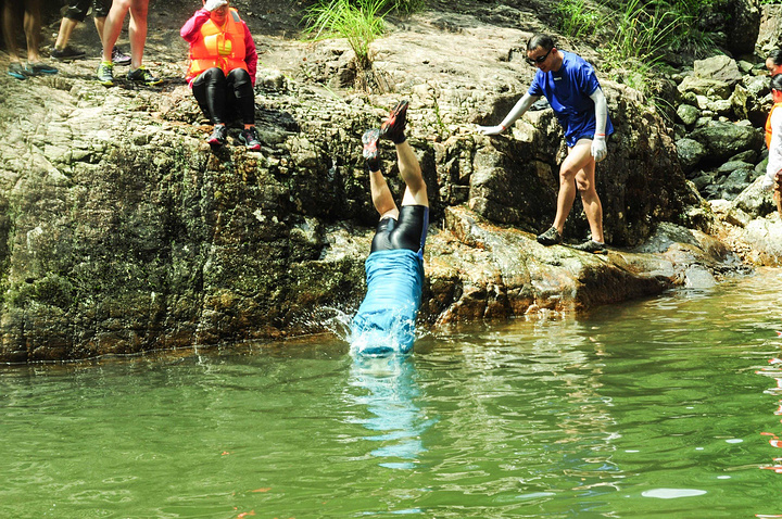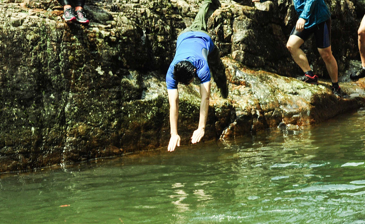 到达谷底,虽然水位比之前要浅,可能因为天热的缘故,不过依然挡不住大家想跳水的热情,一个接一个往下跳!!!!!