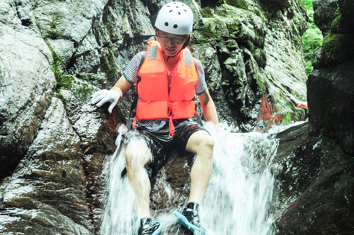 大家一个个排队,一个个下跳~~这次水流不大,可以人停在滑道,上次7月初,水流较大,直接从上面滑下来~~一头扎进水中!!!