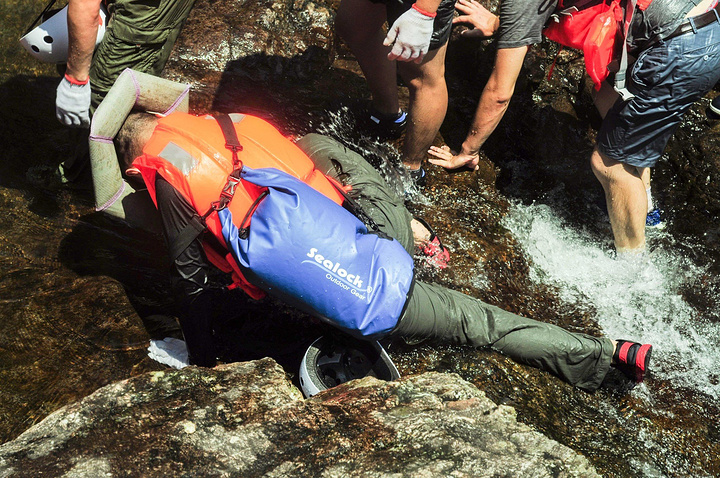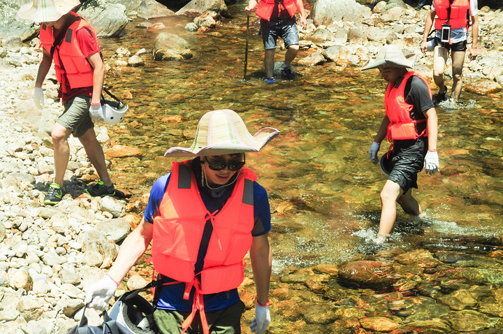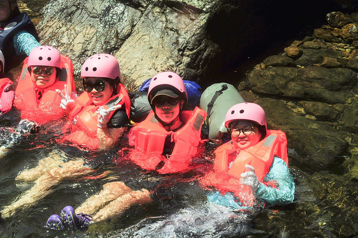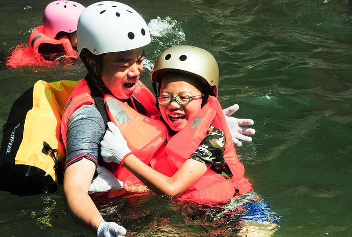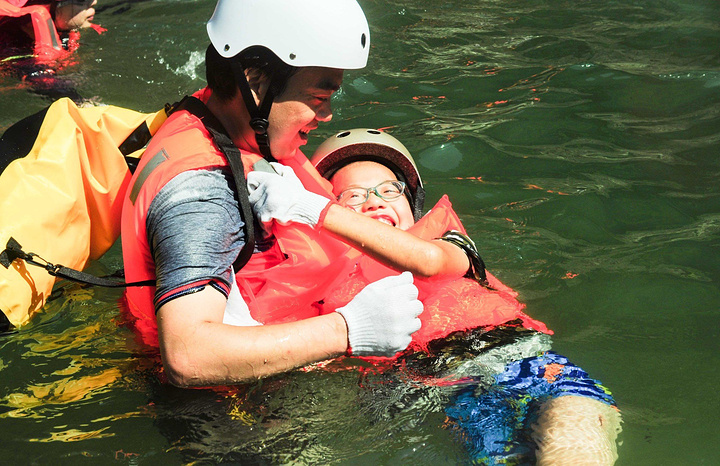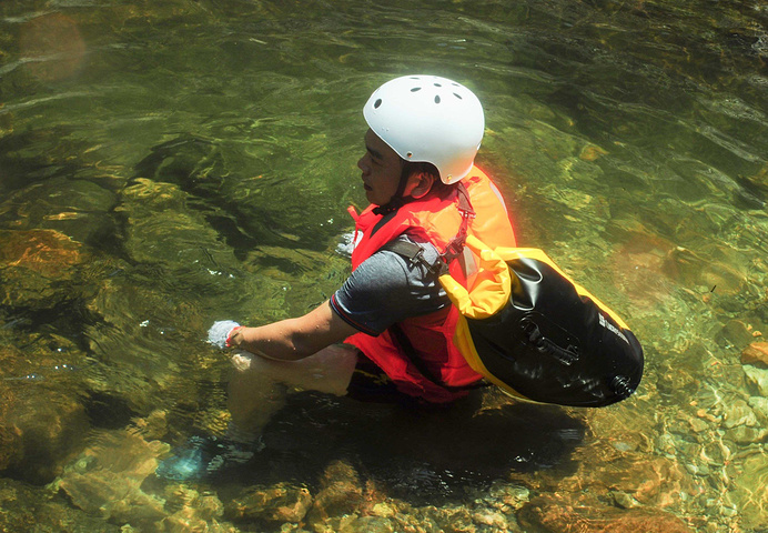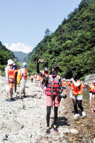 穿戴好救生衣及头盔,峰潮就欢欢乐乐的走向下水点啦。