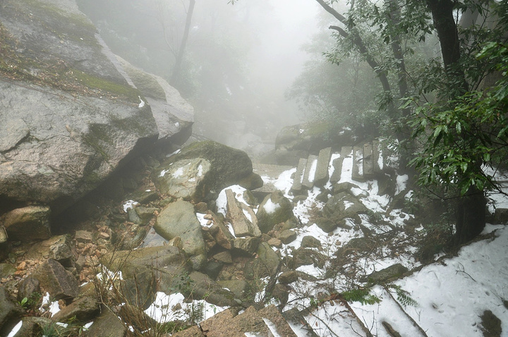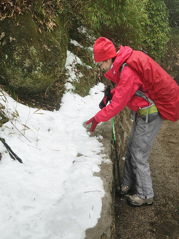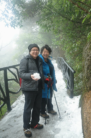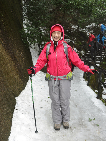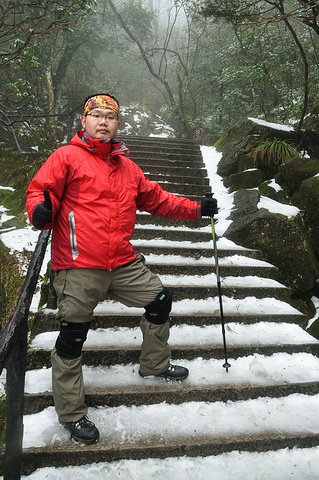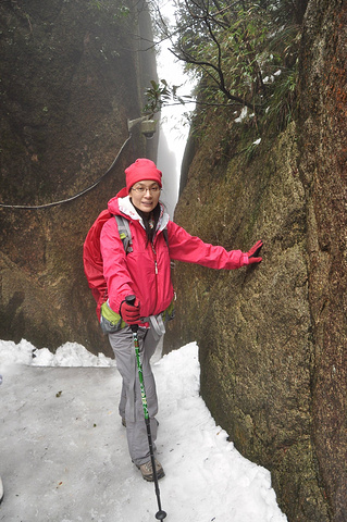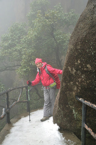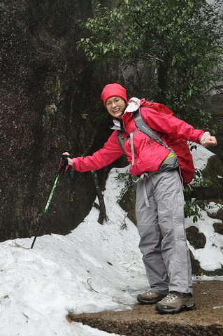 今天的游览区域是东部环线,南清园等,其实对于平地都路痴的我来说,身处大山,只知上下前后,没有东南西北,所以,怡然跟着大宝开始迷途探险。走下石阶路,经过南索道出口处的日上山庄,看到院子前的皑皑冰雪,赶紧站在冰雪制高点,哈哈,留念一下^_^