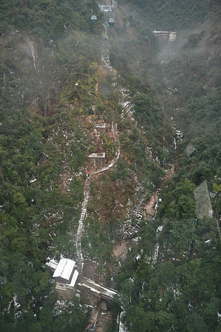 但是,索道出口的平台处,依然不够高,所以,我们踏着石阶,隔着滑溜溜的薄冰,小心翼翼的的继续上行。