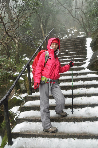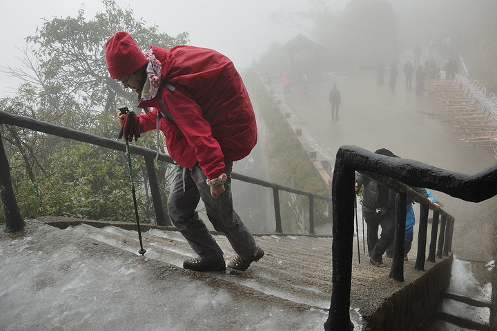 依然勇敢下山。其实下山真的更不好走,被踩实的冰雪在平平的石阶上构造出层层叠叠的短斜梯,依靠着鞋底小小的摩擦力,往下走,对于我这种平衡感低能者来说,真的是需要很大勇气的。
