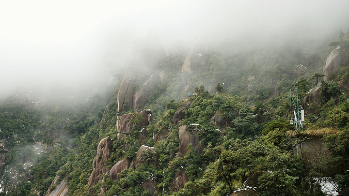 沿着湿湿滑滑的台阶,飘飘渺渺的山雾,缓缓上山,不多久,就到了我们的下榻处,大三清酒店,建在山崖边上有着豪气名字的客栈!