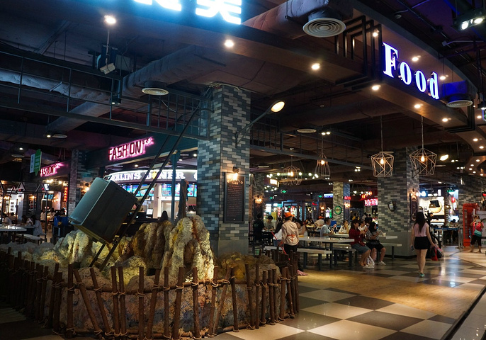 硕大的22万平米的地下时尚天河,步行所至抬头皆能看见不同的美食。价位也都在CNY10上下,平民消费。每一个商铺的外观都非常独特,连服务员身着或上世纪的古典服饰、或者士兵装也成为一道风景。时尚天河吸引商户众多,除了随处可见的商铺外,还有两大美食区,价位都非常得亲民。因为是初次到达广州,对于美食区或A区或B区已经迷糊,可知的是一个区为美食街类型,餐饮品质不错,座位集中,类似于学院食堂,颇为大型;另外一个美食区开设各类成都川菜、日式料理,泰式菜馆等等,口味都非常得值得称赞。