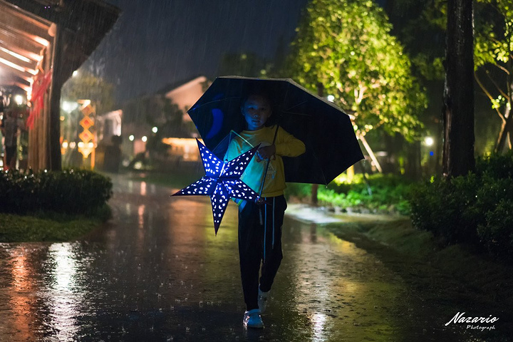乌镇自古有“提灯走桥”的习俗,远远从河上望去,桥上星火点点,桥下水光摇曳,孩子们更是喜欢提灯走街串巷。不过屋外的雨越来越大,以近乎瓢泼大雨之势,说老实话这时候我都准备放弃了,不过执拗的小丫非要去乌镇“提灯走桥”