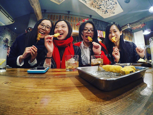 我们本来是想找一家居酒屋,但是在大街上挑花了眼,最后莫名地就进了一家卖炸物的小餐馆