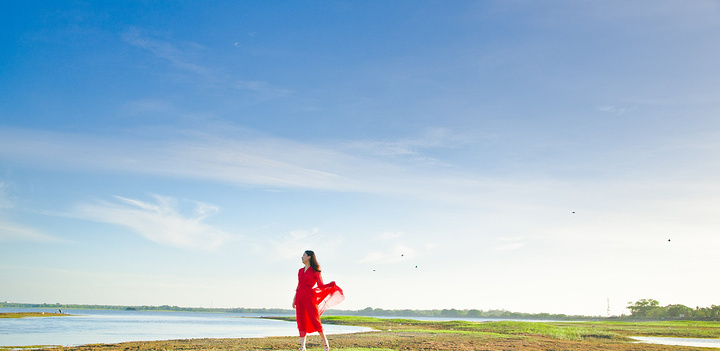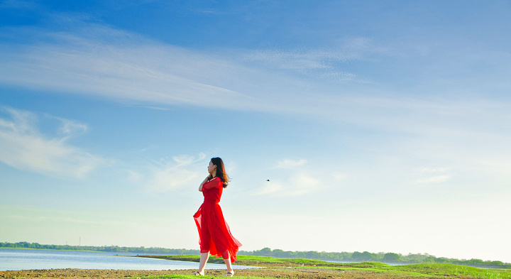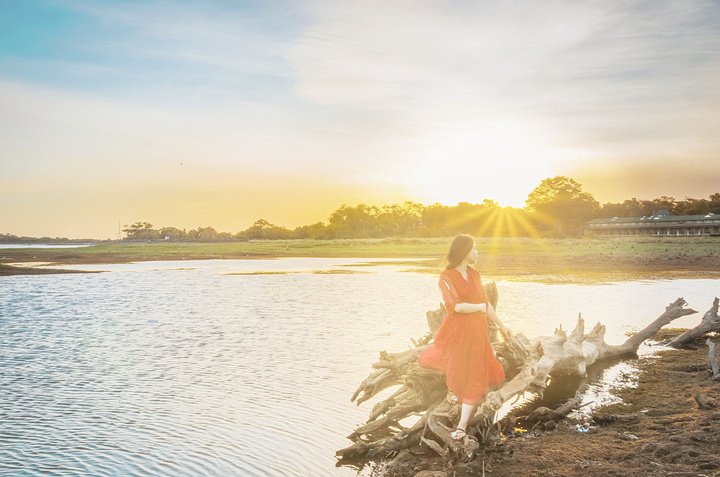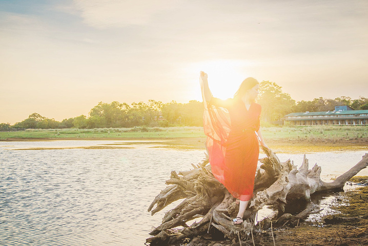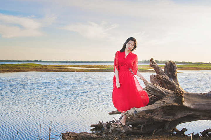 我实在是太爱酒店坐落湖边的绝佳位置了,于是早上5点多就拉上热点妹子,换上大红裙又到湖边拍日出了。