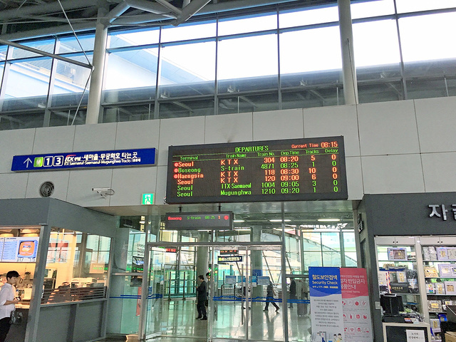 吃完早饭,大概已经8点40左右了,韩国的火车站挺有意思,没有人安检,也没有人检票。。