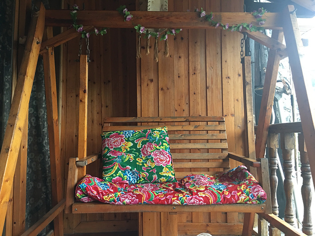 坐在摇椅上臭美,耳环是晚上在古城内的店里面买的,这种饰品店特别多,晚上我们吃吃东西,在古城逛逛,就早点回去休息了,前两天的路程实在太累了。