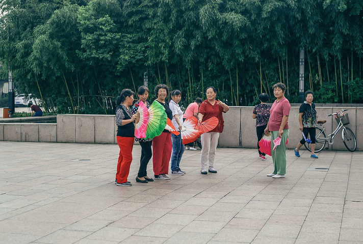 先去了原先在网上查好的一间餐厅,叫做“面匠”,稍后会大力介绍,在胥门路的桥下边儿。路过一群大妈在跳广场舞,还有一位乱入的大叔,不过刚巧他拿着一把黄色的扇子,与我们的小黄车如此匹配。