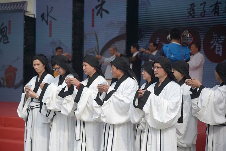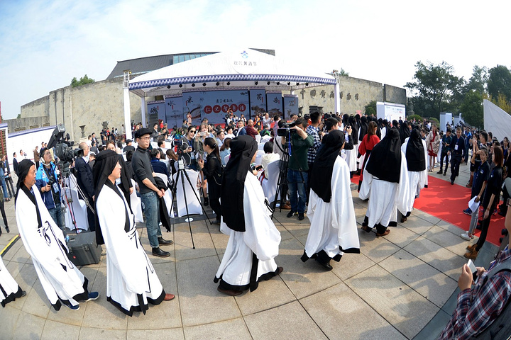几十位身穿汉服的绍兴酿酒师用绍兴话一齐朗诵《黄酒赋》,虽听不太懂,但仍从咿咿呀呀中领略出黄酒之精华,绍兴之风雅。