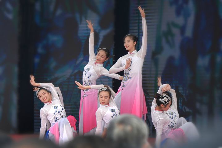 几位小姑娘迈着轻盈的步法表演“越式现代舞”,把现场推向高潮。民族、芭蕾、现代舞完美的融合,为编舞老师点个赞。