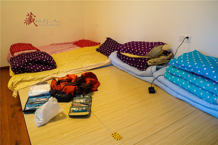 到达日喀则后,我们直接入住平措青旅日喀则店。部分同伴都升级了标间,需另付88元/间。结果到我和帮主办入住了,标间满了,只能给我们了一间多人间榻榻米房,加收66元。日喀则普遍住宿水平比拉萨差很多,对于房间的条件我们都有心理准备了,好久没住大通铺也挺新鲜的。