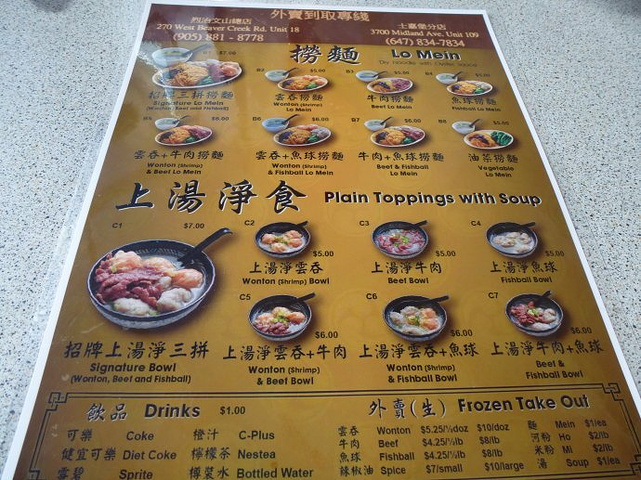 早就听密友说多伦多有一家特别的虾肉云吞店,她的处女座挑剔吃货朋友每次从上海回多伦多的第一件事就是到那里去吃一顿以解相思之苦。后来她去多伦多也被带着去尝过,说起来也是赞不绝口。这样的口口相传,弄得我心里也痒痒的。所以赶在又一次去多伦多之前,拿到了店名——沾仔记。然后在网上一查~~咦,居然又是在我们住的HWY-7酒店旁边我们跟这块地盘真的是有缘哪那次去,日程还排得蛮满的,中午11点半跟人约好吃饭,然后这沾仔记要10点才开门~~怎么办呢~~吃货的定义就是没有条件创造条件也要去吃,所以在我的大力鼓吹下,我们还是决定10点去吃早饭,然后11点半赶下一场午饭