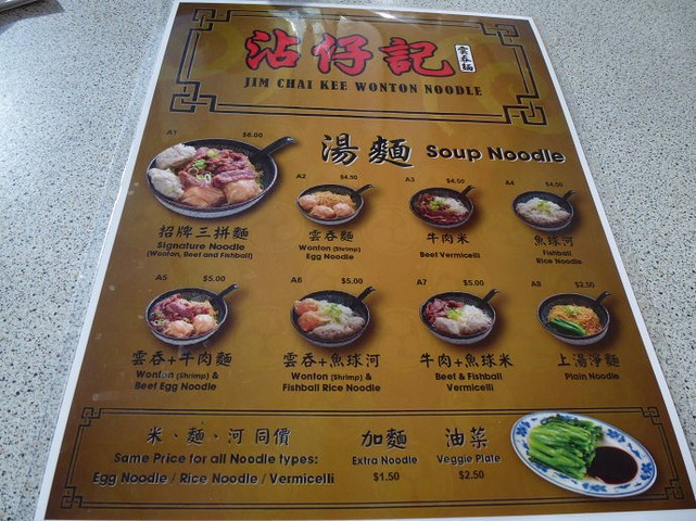 菜单。事先在网上查过,他家的招牌其实不止云吞,鲮鱼球和牛肉也很受欢迎的,就是所谓的“招牌三拼”啦