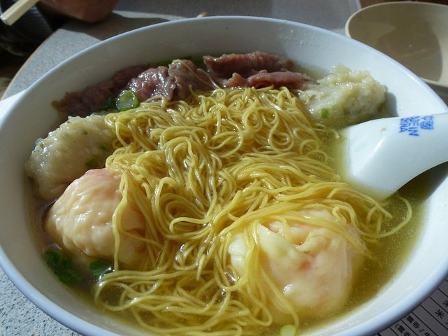 这个就是传说中乒乓球大小,只有虾仁没有肉的虾肉云吞啦。某人很喜欢吃,我到觉得还一般啦。云吞有点太大还不够软不太习惯。。。而且对我这个重口味来说云吞汤不够鲜,有点太寡淡了。。。相比之下,可能还更中意软烂的牛肉片和鲮鱼球一些。