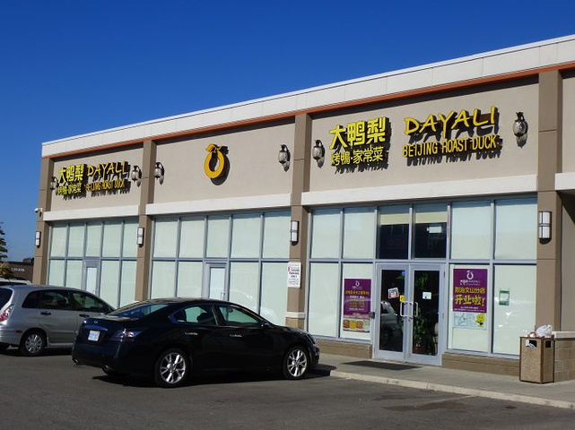 么错,我们厚脸皮的在人家虾肉云吞小馆子两个人分了一碗招牌三拼汤面,就是因为11点半要赶到“大鸭梨”吃烤鸭。这大鸭梨在多伦多也是火得不得了,已经开了两家分店了,据说周末餐餐爆满,运气不好的时候定位都订不到。不过我们这次也到得太早点啦,过去的时候整个mall静悄悄的的,大鸭梨也是铁将军把门