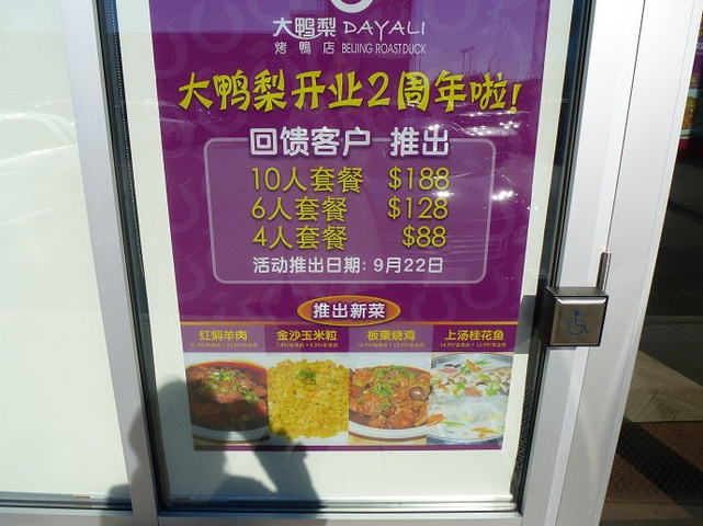 不知道哪里得来的印象,我一直以为大鸭梨很贵的,直到我们看到他们贴在橱窗里的优惠广告。。。咦,价格还蛮亲民的嘛